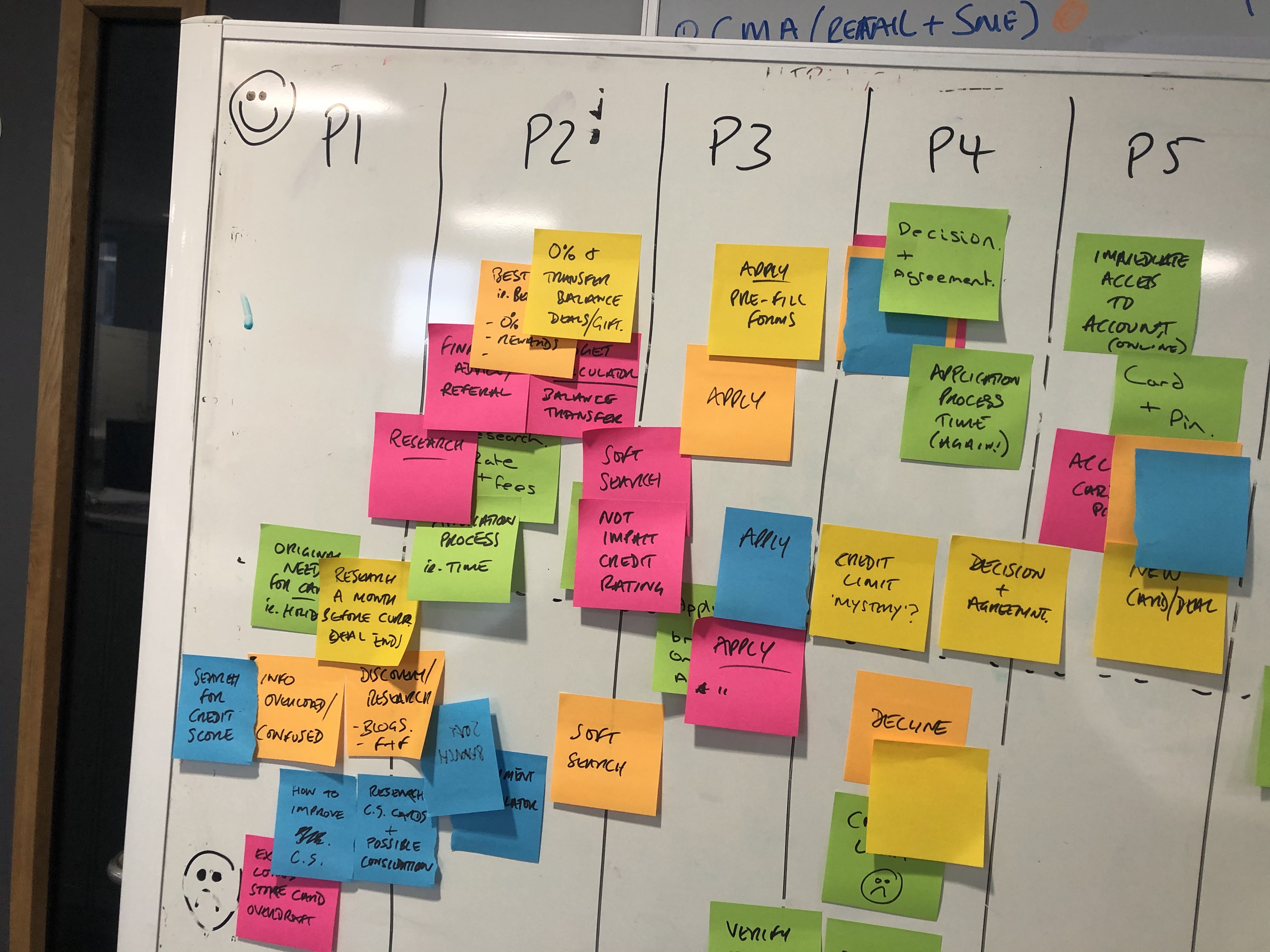 To reach these two points we used three frameworks across a day of workshops, which I facilitated. Representatives from each team were invited to share their knowledge about the credit card journey and how it could be improved.