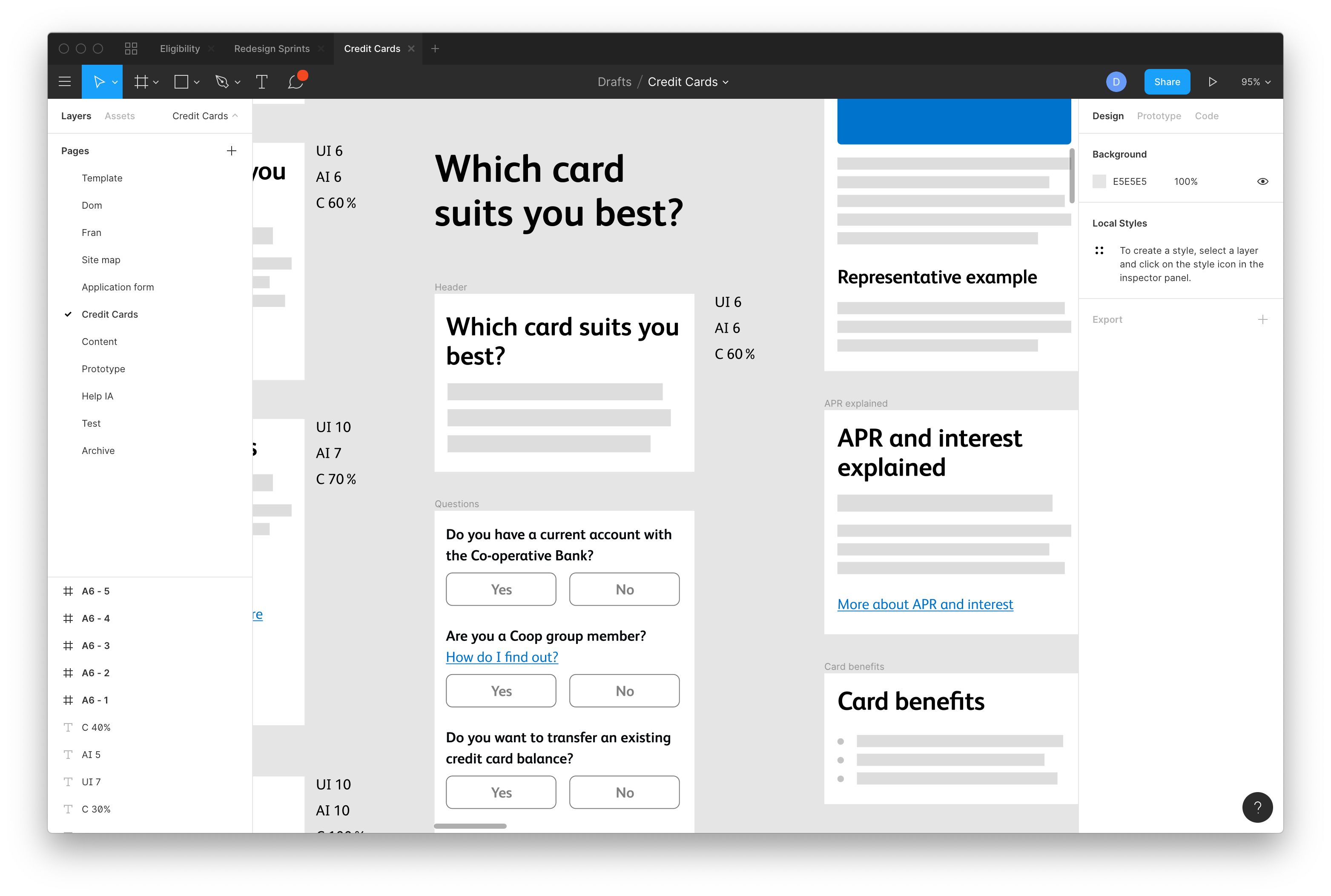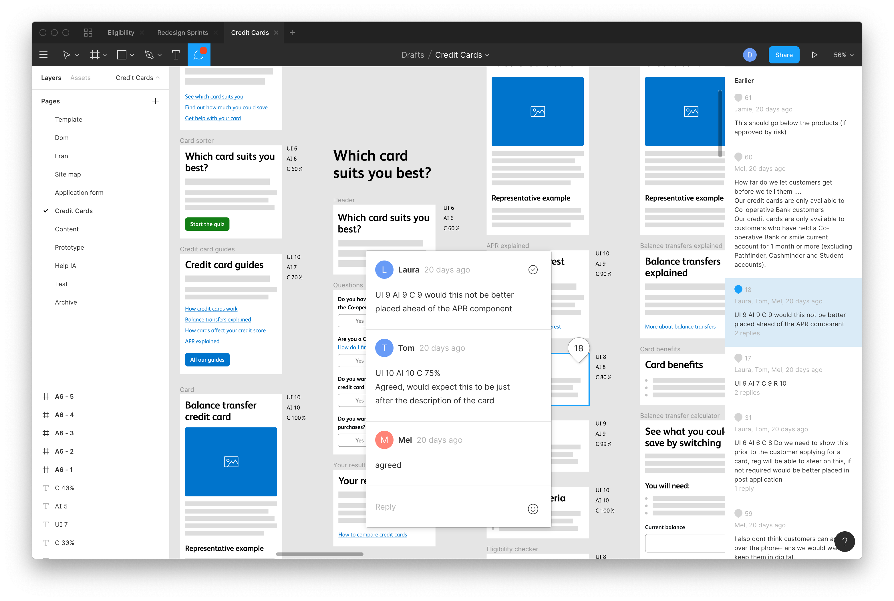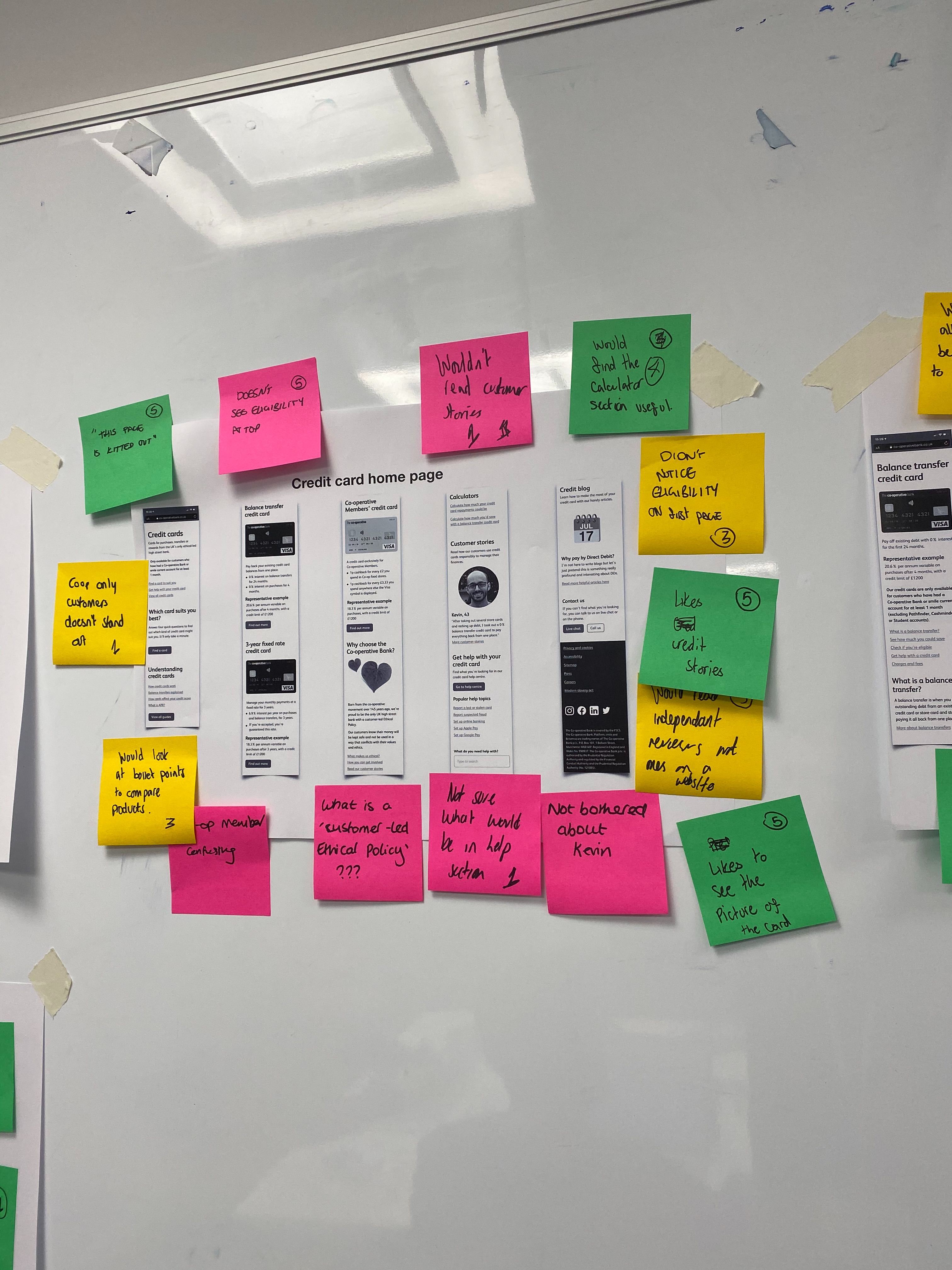 We also ran collaborative research sessions with colleagues in other digital teams to identify what competitors were doing well (and poorly!) for the key areas in our journey - taking in examples from direct financial services competitors and from industry leaders and expectation-setters in other sectors to measure the level of general expectation across the web in application forms, in help sections, in product pages, etc.