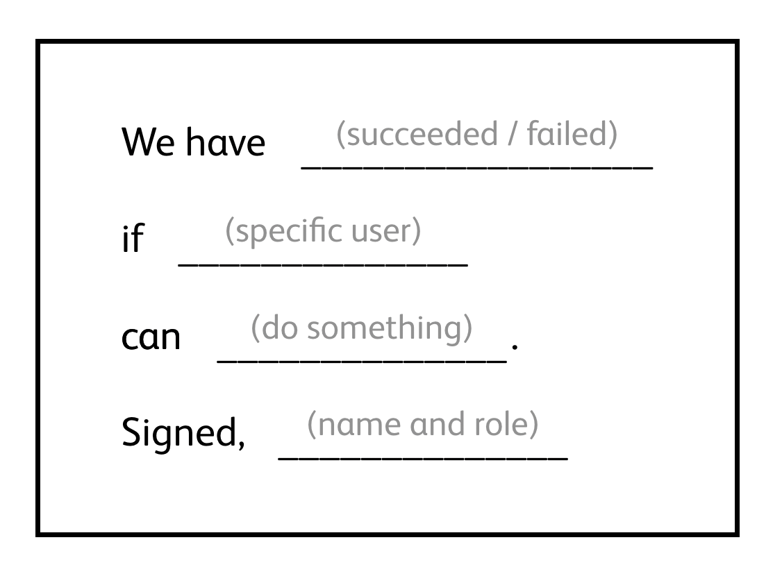 The final exercise was created to find out the worries and internal beliefs in different teams. We asked each participant to reflect on their role in relation to the product and think about how they would judge our redesign to be a success or a failure, and then talk the rest of the group through the rationale.