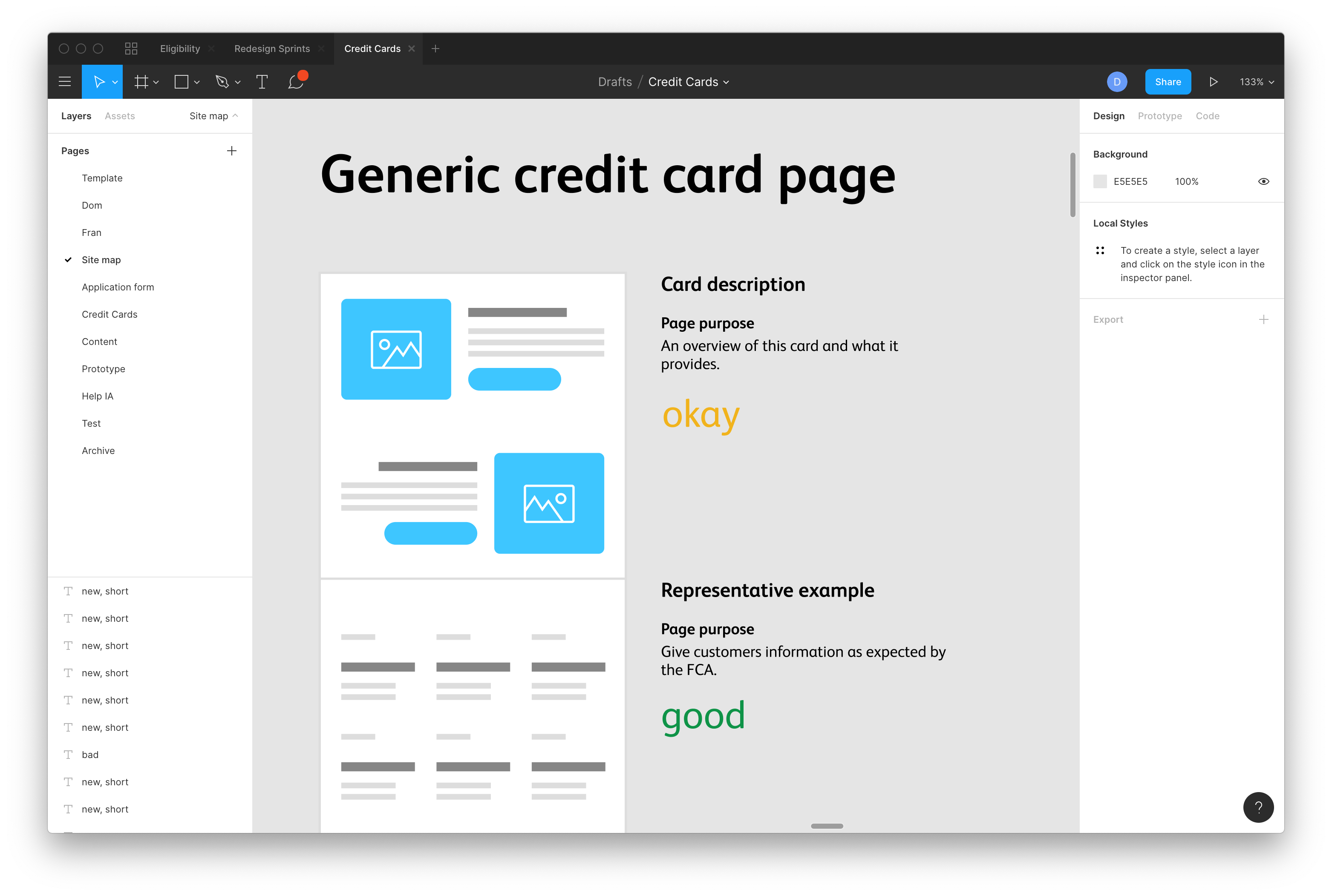 Each component on each page had a rating of either Good, Bad, OK if it existed already on the site, rated by our content designers and from reviewing prior user tests. If the content was new we rated them as either Short (meaning they could be done within the existing sprint) or Long (meaning they would be pushed into a content sprint later on and reprioritised there.
